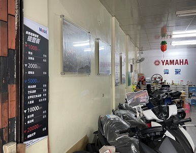 而今年最新推出的直式機車保養里程看板, 更是突破性的創新, 黑色底色呈現各個行駛里程數和應保養/更換項目, 讓機車騎士在保養前能盡速一目了然, 更顯專業。